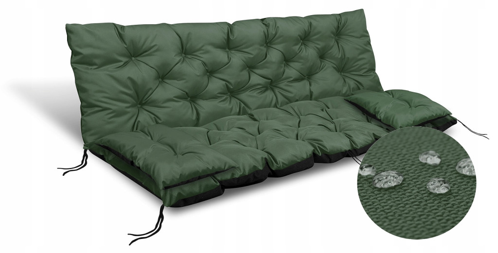 GUGALNICA VRTNIH BLAZIN ZA UDOBJE NA VRTU: Uživajte v udobnem in sproščujočem počitku na svojem vrtu s to vrtno garnituro blazin v zeleni barvi. Ta set vključuje podolgovato blazino dimenzij 180 x 60 x 50 cm, primerno za gugalnice, klopi ali druge vrtno pohištvo.