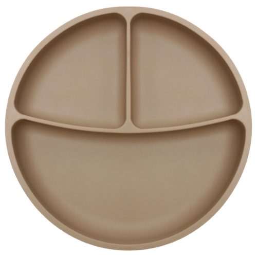 Silikonowy talerzyk okrągły z przyssawką z trzeba przedziałkami, beżowy
