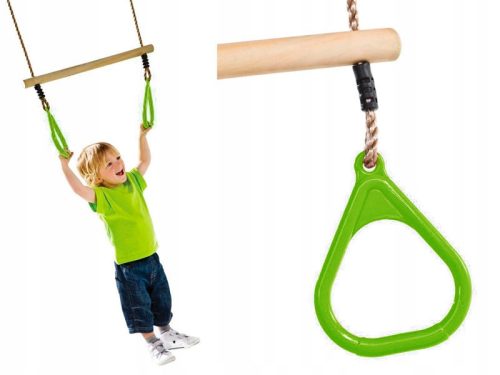 Otroci so neskončno gibljivi in pomembno je zagotoviti jim ustrezne možnosti za izvajanje akrobacij. Dreveseni trapez z trikotnimi obroči ima široko uporabo v različnih konstrukcijah in odlično razvija telesno spretnost vašega otroka. Z nami ustvarite najboljšje igrišče, ki je čudovito mesto brezskrbne igre, povezane z telesno aktivnostjo. Tehnični podatki: - barva: limeta - PP vrvi z nastavljivo dolžino do 130 cm - dimenzije palice: širina 58 x premer 3,5 cm - material: les, plastika - visoka trpežnost konstrukcije - odpornost na spremenljive vremenske pogoje - enostavna montaža z zankami na koncu vrvi - varnost pri uporabi - na voljo je 8 barv. Trapez je odporen na vremenske razmere - ne zbledi na soncu, odlikuje ga visoka trpežnost - prenese težo večkrat večjo od teže otroka in je zelo enostaven za montažo. Trikotni gimnastični obroči so iz polipropilena, drevesena palica pa je zaščitena z bakrovim premazom. Gimnastični trapez na igrišču za otroke lahko uporabite na več načinov. Otr