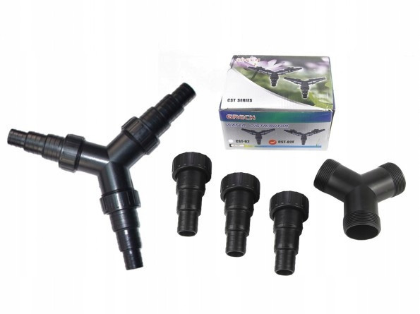 Uniwersalny trójnik / rozdzielacz do węży ogrodowych oraz akwarystycznych. Trójnik posiada króćce przyłączeniowe umożliwiające zaadoptowanie przewodów o średnicy 25mm, 32, oraz 38mm.