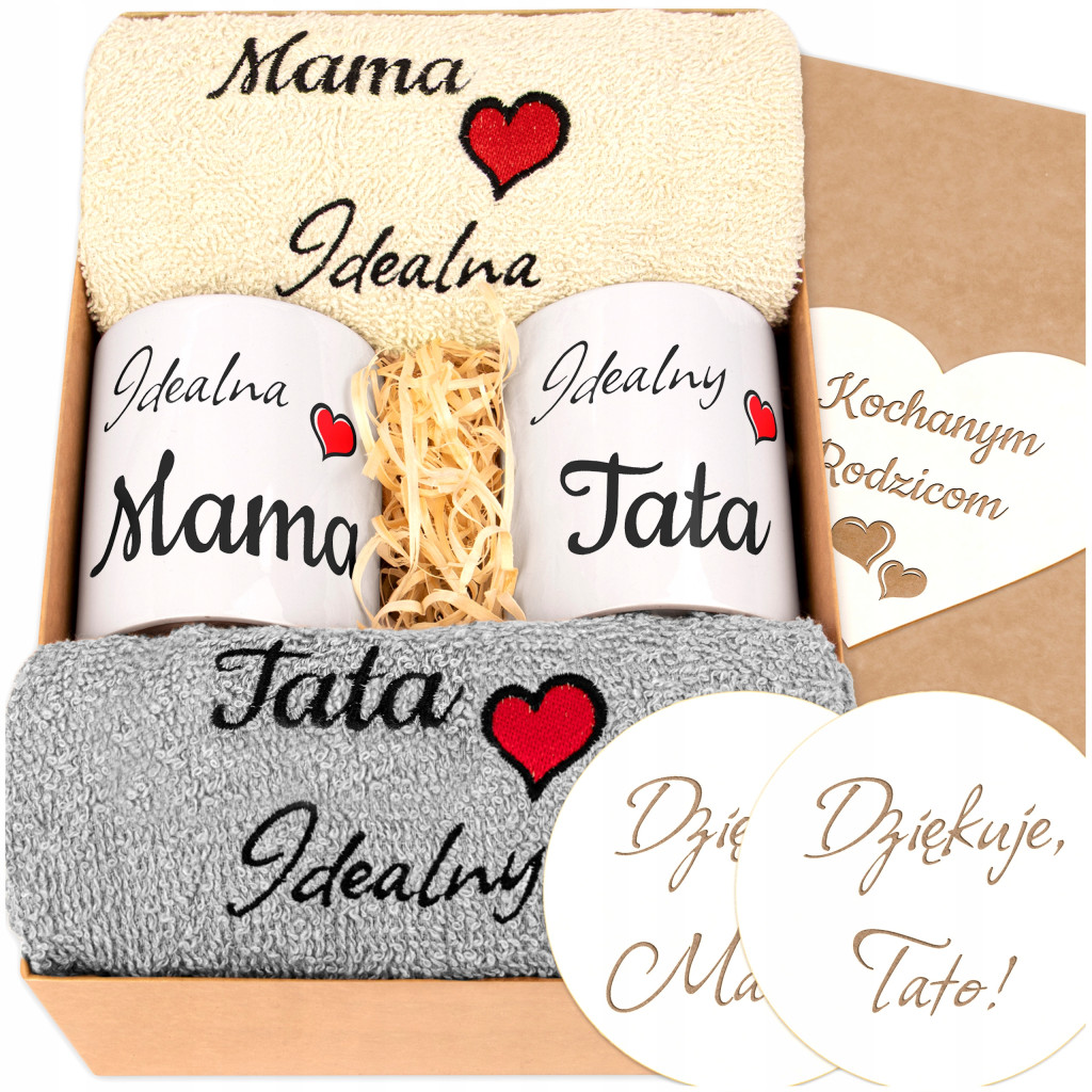 Prezentowany zestaw to idealny sposób na wyrażenie swojej wdzięczności i uznania dla najważniejszych osób w Twoim życiu. Zestaw składa się z dwóch eleganckich kubków oraz dwóch miękkich i przyjemnych w dotyku ręczników, które z pewnością przydadzą się podczas codziennych czynności. Kubki są ozdobione subtelnym napisem "Idealna Mama / Idealny Tata", co dodaje im jeszcze więcej uroku. Ten zestaw to nie tylko praktyczny prezent, ale też wyraz szacunku i miłości dla rodziców❤️.
