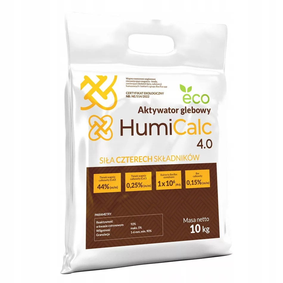 Nawóz wapniowy HumiCalc 4.0 do nawożenia trawnika, upraw przydomowych, ogródków warzywnych oraz szklarniowych. Reguluje odczyn glebowy aktywuje życie biologiczne.