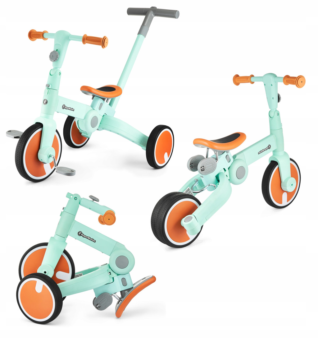 Na początku rowerek pełni funkcję pierwszego, bezpiecznego jeździka dla dziecka. Może zamienić się w trójkołowy rowerek kontrolowany przez rodzica lub samodzielny rowerek, by finalnie stać się rowerkiem biegowym, czy też dwukołowym. To idealny towarzysz zabaw na długie lata!