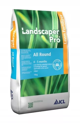 LandscaperPro All Round to nawóz służący do nawożenia trawników już ustabilizowanych. Dzięki działaniu 4-5 miesięcy, może być aplikowany raz w sezonie lub łączony z innymi nawozami z grupy Landscaper Pro.
