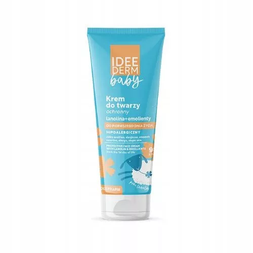 Idee Derm Baby Krem ochronny do twarzy zapewnia intensywne nawilżenie i natłuszczenie skóry twarzy, koi, łagodzi i wzmacnia barierę ochronną skóry dzieci i niemowląt od 1 dnia życia.
