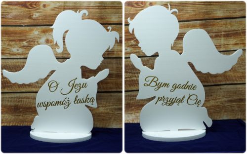Angelčki za prvo obhajilo, okraski iz kakovostnega stiropora, višina 99 cm, širina 85 cm (chlapec) in 88 cm (dekle), skupna dolžina po razgrnitju 185 cm, debelina 3 cm, bela barva, napis z zlato folij