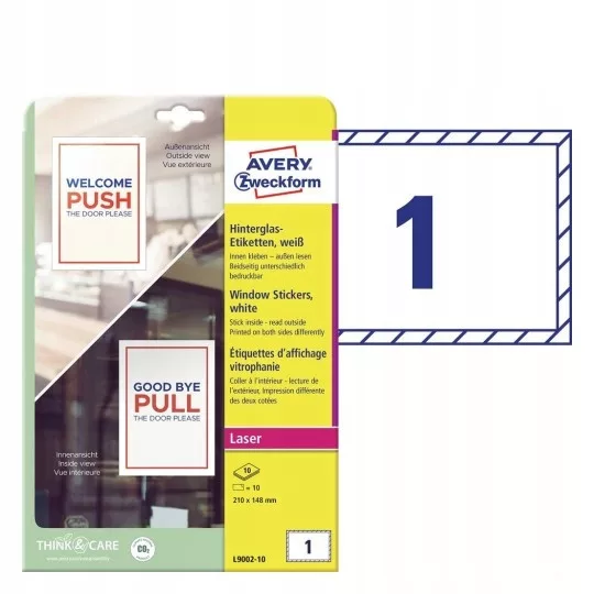 Naklejki na okna usuwalne Avery 210-148mm 10 arkuszy biały