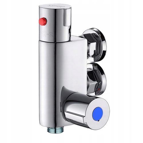 G-TERM IntimSpa to termostatyczny zawór mieszający z pokrętłem regulacji temperatury wody zmieszanej oraz pokrętłem regulacji ciśnienia wody. Jego działanie polega na podmieszaniu do żądanej temperatury podłączonej do niego wody zimnej i ciepłej.