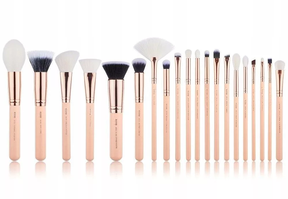 W zestawie znajduje się 20 pędzli do makijażu twarzy i oczu.
