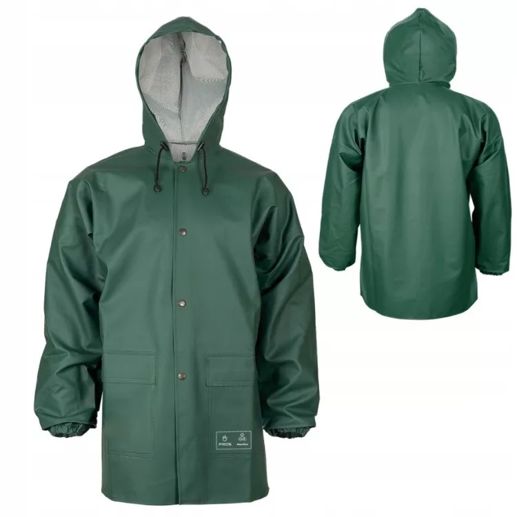 Kurtka ¾ zapinana na napy, wyposażona w kaptur zamocowany na stałe oraz dwie kieszenie przykryte patkami. Model produkowany z wodoochronnej tkaniny Plavitex® (Poliester/PVC - tkanina na podkładzie poliestrowym jednostronnie powlekana PCV polichlorkiem winylu, gramatura: 350 g/m2, grubość: 0,48 mm). Plavitex® charakteryzuje się wysoką odpornością na rozdzieranie, wodoszczelnością szwów oraz wysoką odpornością na zginanie przy ujemnych temperaturach (nawet do – 50°C). Kurtka przeznaczony do użytku w niesprzyjających warunkach pogodowych. Zapewnia skuteczną ochronę przed wiatrem i deszczem. Technika obustronnego zgrzewania zwiększa wytrzymałość szwów.