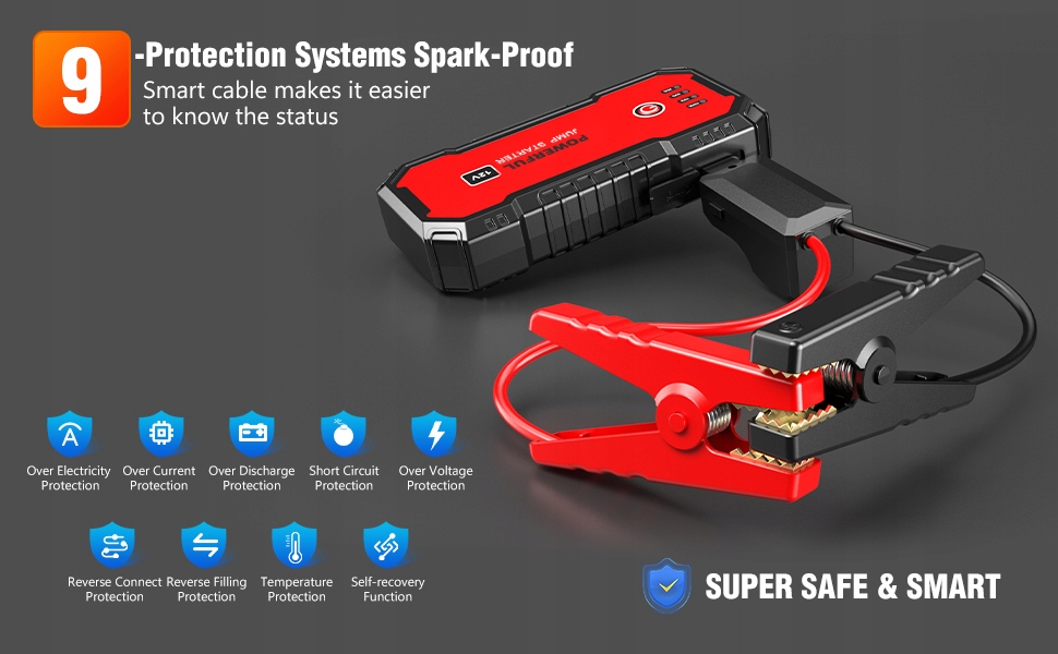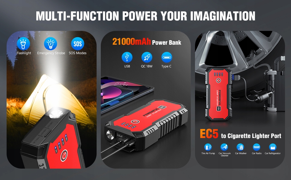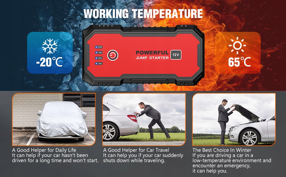 S starterjem za skok 2000A 21000 mAh Homore boste vedno pripravljeni na nenadne težave z zaganjalnikom vašega avtomobila. Ta zmogljiv starter vam omogoča enostavno zagon vozila brez potrebe po pomoči druge osebe ali pomoči vlečne službe. Z močjo 2000A in kapaciteto 21000 mAh lahko zanesljivo zagnete vaš avto, motor ali druga vozila. S kompaktno obliko je primeren za shranjevanje v prtljažniku avtomobila ali torbi za prenašanje. Poleg tega je opremljen z več varnostnimi funkcijami, kot so zaščita pred prenapetostjo, preobremenitvijo in kratkim stikom, kar zagotavlja varno uporabo. Ne tvegajte neprijetnih presenečenj na cesti - bodite pripravljeni z Jump Starterjem 2000A 21000 mAh Homore.