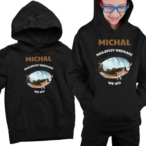 BLUZA KANGUREK Z KAPTUREM CIEPŁA PREZENT DLA WĘDKARZA NA RYBY IMIĘ WZORY