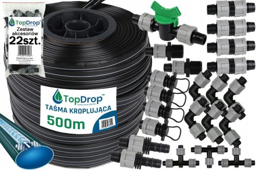 Komplet zawiera 22 sztuki akcesoriów do taśmy kroplującej.