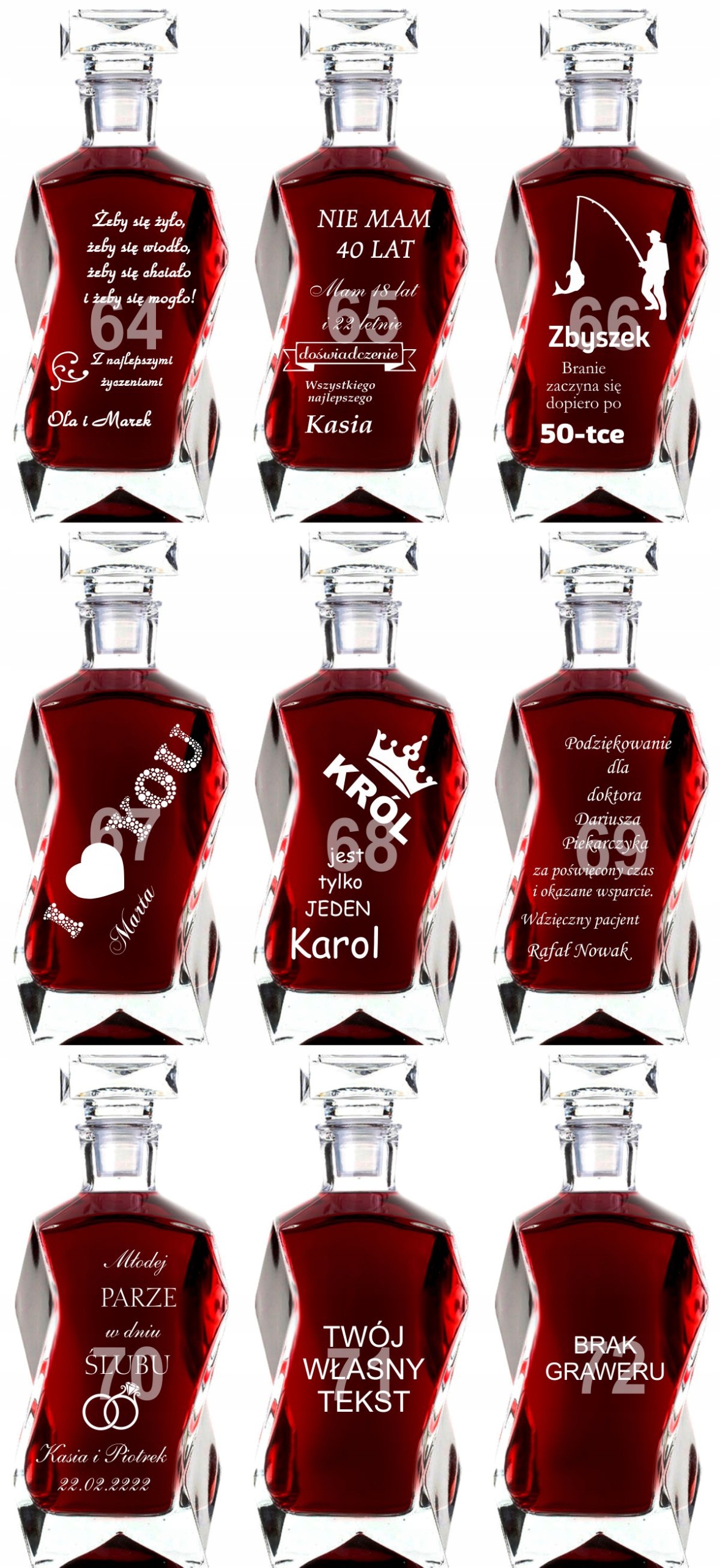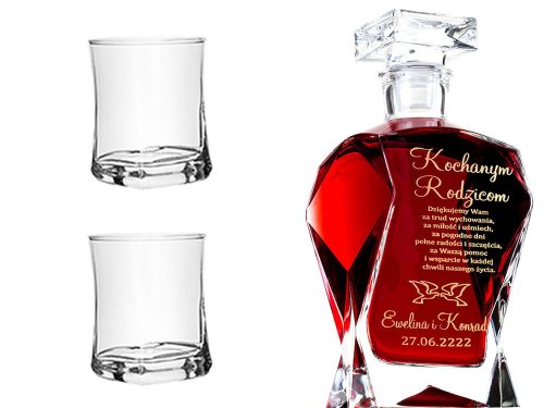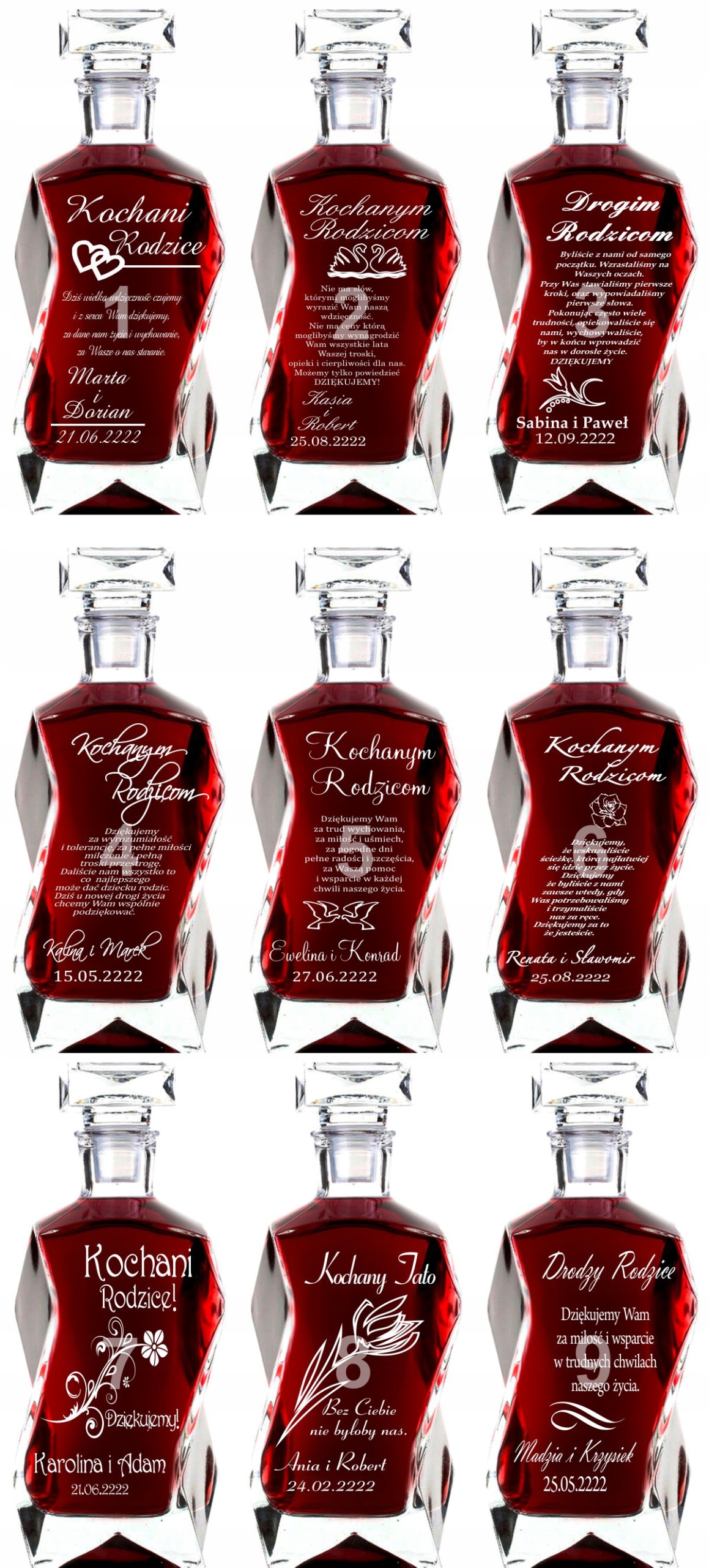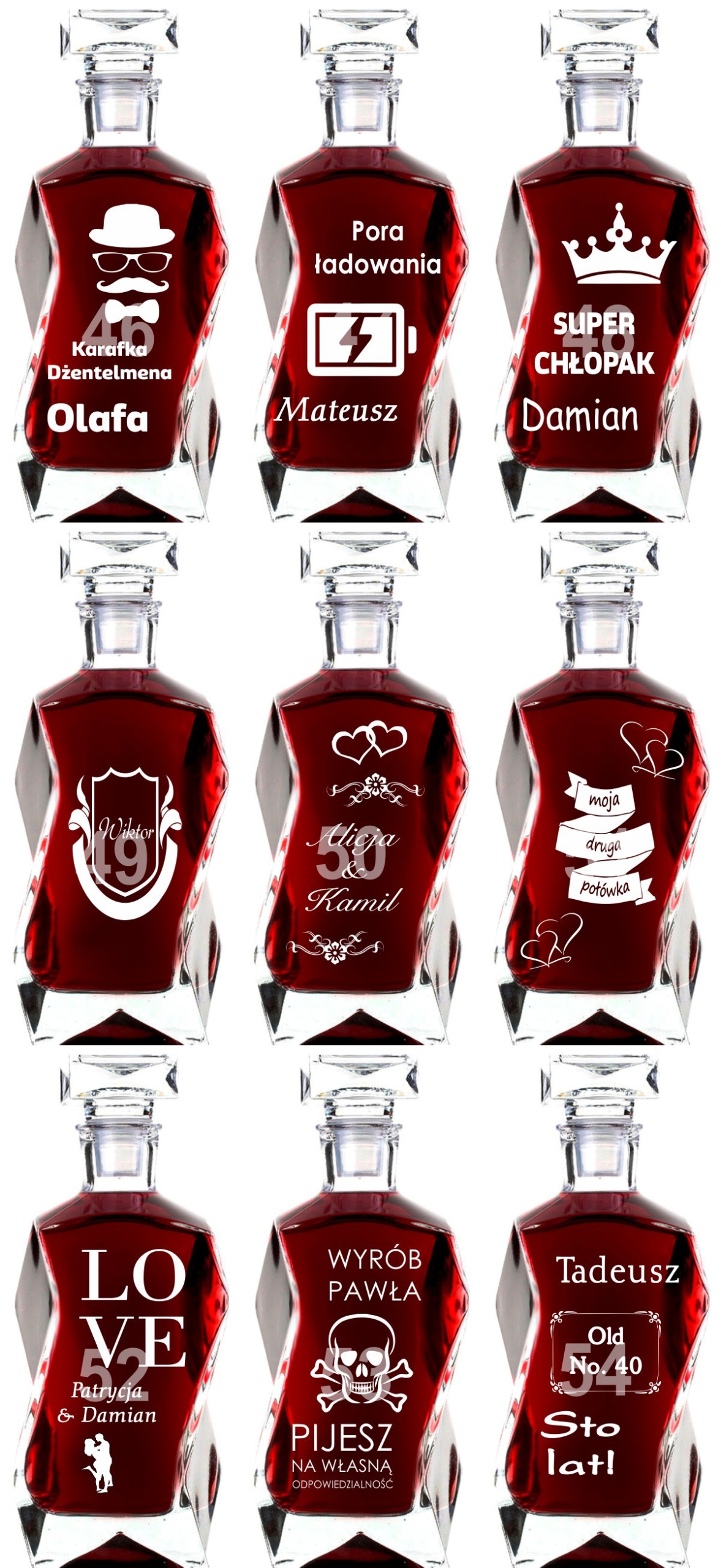 Masz problem z podjęciem decyzji jaki prezent wybrać na podziękowania dla rodziców? Idziesz na rodzinną imprezę i nie wiesz co kupić jubilatowi / solenizantowi? Kup tą karafkę! Jest to piękny produkt, ręcznie formowany, co sprawia że każdy jest niepowtarzalny. Produkcja polska. Ponadto jest grawerowana na wysokiej jakości ploterze laserowym, a grawer jest ręcznie i bardzo dokładnie wypełniany przez rzemieślnika specjalną farbą. Złocenie / srebrzenie mieni się pod światło, co daje niesamowity efekt. Obdarowana osoba widząc tak dobrze wykonany prezent na pewno będzie zachwycona :)
