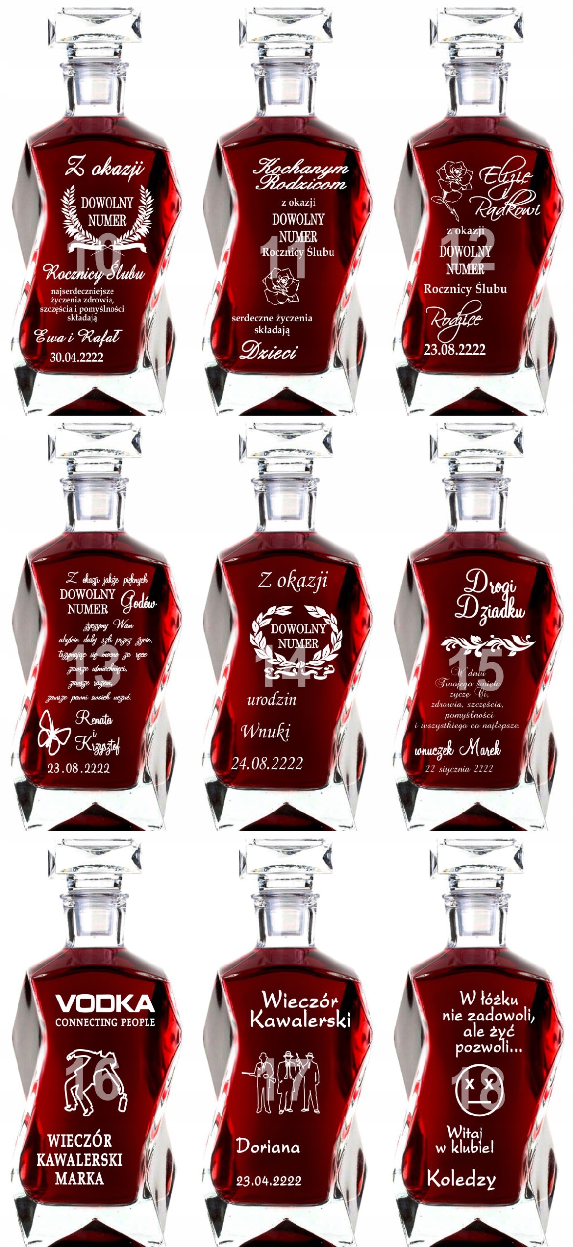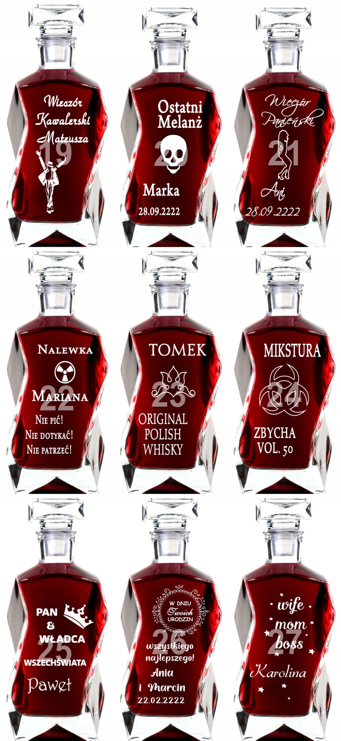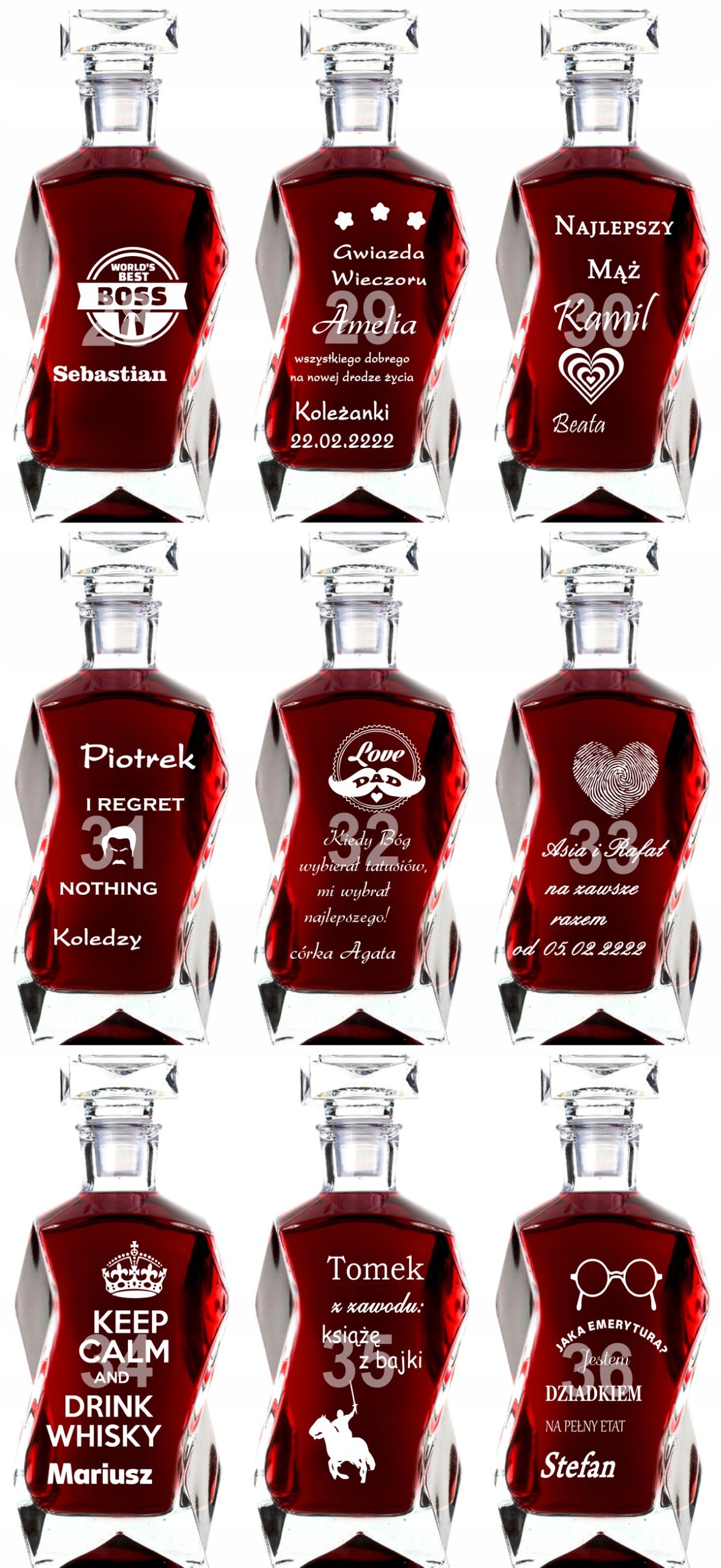 Masz problem z podjęciem decyzji jaki prezent wybrać na podziękowania dla rodziców? Idziesz na rodzinną imprezę i nie wiesz co kupić jubilatowi / solenizantowi? Kup tą karafkę! Jest to piękny produkt, ręcznie formowany, co sprawia że każdy jest niepowtarzalny. Produkcja polska. Ponadto jest grawerowana na wysokiej jakości ploterze laserowym, a grawer jest ręcznie i bardzo dokładnie wypełniany przez rzemieślnika specjalną farbą. Złocenie / srebrzenie mieni się pod światło, co daje niesamowity efekt. Obdarowana osoba widząc tak dobrze wykonany prezent na pewno będzie zachwycona :)