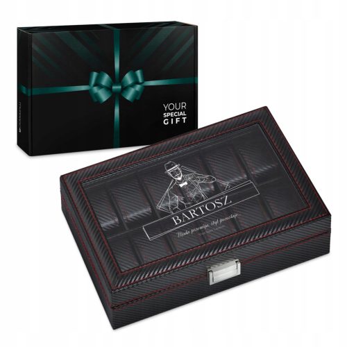 Zaprojektowana z myślą o praktycznym wykorzystaniu przestrzeni, nie tylko przechowasz w niej zegarki, ale również inne drobiazgi, takie jak biżuteria Wewnętrzny układ szkatułki pozwala pomieścić 12 sztuk zegarków, zapewniając bezpieczne miejsce. Wielofunkcyjność szkatułki sprawia, że jest ona niezbędnym elementem codziennej organizacji i eleganckim dodatkiem do wnętrza idealnie nada się na prezent dla taty, mężczyzny, faceta, chłopaka.