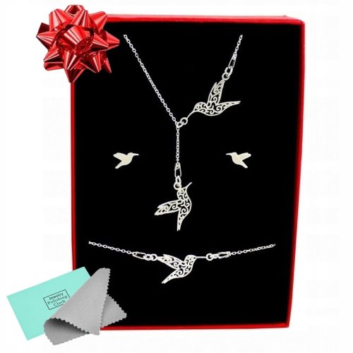 ✅ Uroczy motyw kolibra: Zarówno naszyjnik, kolczyki, jak i bransoletka są ozdobione uroczym motywem kolibra. Koliber symbolizuje lekkość, radość i harmonię z naturą, co nadaje zestawowi wyjątkowy urok.