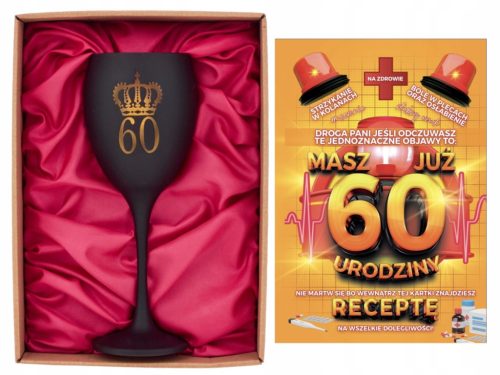Elegancki, matowy kieliszek do wina udekorowany pięknym grawerem z okazji 60 Urodzin. Doskonały prezent na wyjątkową okazję. Zapakowany w kartonowe pudełko, wypełnione satyną w kolorze różowym. Idealny sposób na celebrowanie tego wyjątkowego momentu w życiu.