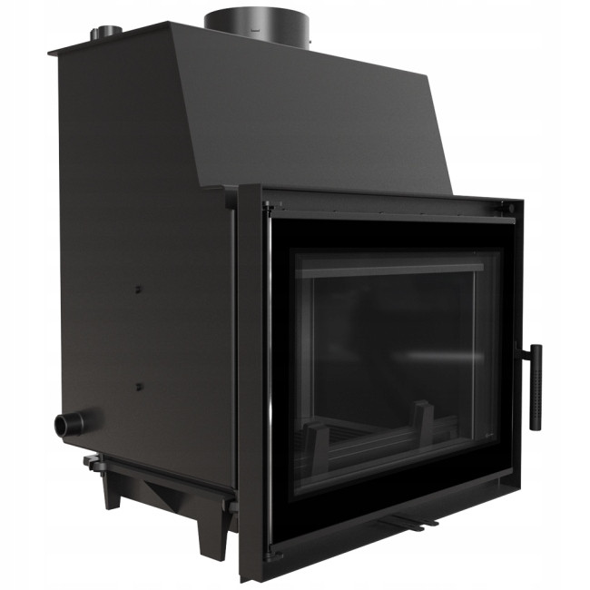 Korpus i front wkładu odporne na działanie wysokich temperatur dzięki zastosowanemu materiałowi - wysokogatunkowej stali.Wbudowane płomieniówki i wysoki czopuch, które zwiększają powierzchnię wymiany ciepła.Regulacja ciągu powietrza za pomocą wbudowanego szybra.Urządzenie posiada potrójny system dopowietrzania komory spalania, dzięki temu spalanie drewna we wkładzie jest ekologiczne, a co najważniejsze ekonomiczne.Dostarczanie powietrza pierwotnego do wkładu odbywa się z zewnątrz, dzięki wbudowanemu króćcowi dolotu powietrza fi 125 mm. Króciec dolotu powietrza znajduje się w podłodze wkładu.Powietrze wtórne dostarczane jest otworami znajdującymi się w tylnej ścianie paleniska tworząc tzw. system dopalania spalin. Odpowiada on za spalanie gazów i ograniczenie emisji szkodliwych substancji do środowiska. Podnosi sprawność kominka, przez co urządzenie osiągają bardzo niskie parametry emisji CO (niska emisja CO).Urządzenie wyposażone jest w system czystej szyby - dzięki tzw. kurtynie strumień powietrza rozprowadzany jest równomiernie, omiata szkło i do minimum ogranicza osadzanie się na nim sadzy. Pozwala to utrzymać efektowny i czysty wygląd szyby przez długi czas.Regulacja dopowietrzenia komory spalania jest niezależna dla wszystkich trzech systemów, dzięki temu użytkownik ma lepszą kontrolę nad procesem spalania.