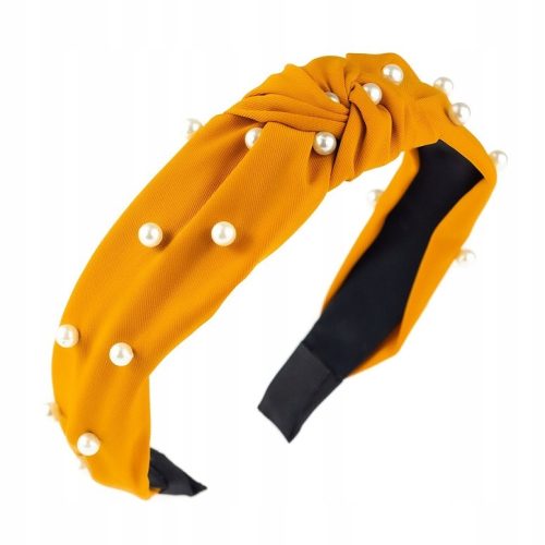Opaska do włosów będzie modnym dodatkiem do włosów, który podkręci każdą stylizację. Pozwoli podkreślić urodę, a także stworzyć wygodną i efektowną fryzurę. Opaska posiada węzeł oraz perełki. Musztardowy kolor doskonale wkomponowuje się w jesienne i zimowe stylizacje.