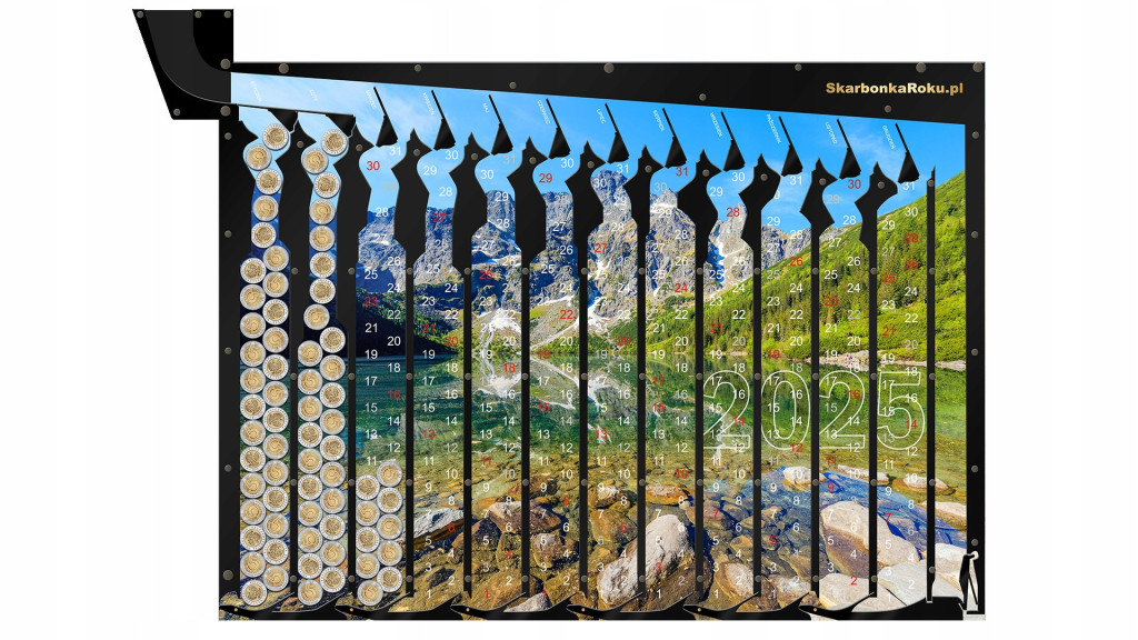 ➡️ Skarbonka w formie Kalendarz 2025 Morskie Oko z cyferkami będzie nam przypominać kiedy wrzuciliśmy ostatnią monetę,