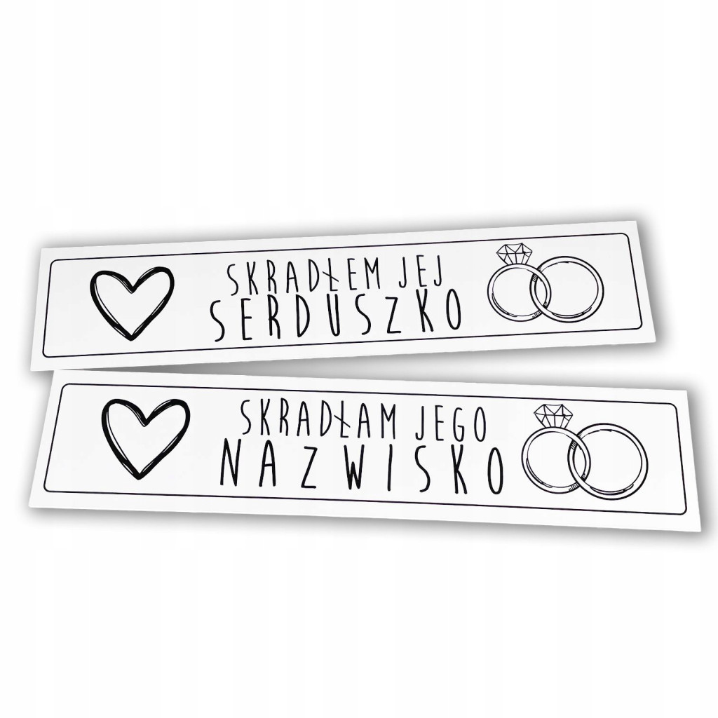 Tablice rejestracyjne specjalnie dla nowożeńców na dzień zaślubin. Idealnie sprawdzą się podczas uroczystości weselnych Młodej Pary. Świetnie się prezentują, są eleganckim dodatkiem do pięknie przystrojonego samochodu czy limuzyny. Wykonane z PCV pozostaną nie tylko na zdjęciach, ale długie lata będą przypominały o tym cudownym dniu.