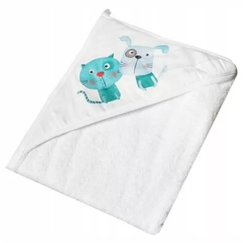 TEGA BABY Okrycie kąpielowe PIES I KOT białe, 80x80cm