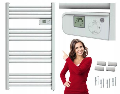 Grzejnik łazienkowy został wyposażony w specjalny element grzejny, który nie wymaga podłączenia pod instalację wodną ani zalania płynem. Niewielkie rozmiary (98 x 54,5 cm) doskonale sprawdzą się w mniejszych pomieszczeniach łazienkowych, jest funkcjonalnym źródłem ciepła, które możesz wykorzystać wewnątrz budynków. Nadaje się do pomieszczeń o powierzchni od jednego do pięciu metrów kwadratowych [powierzchnia w m2 (przy wys. 2,6 m) 1 - 5 m2]