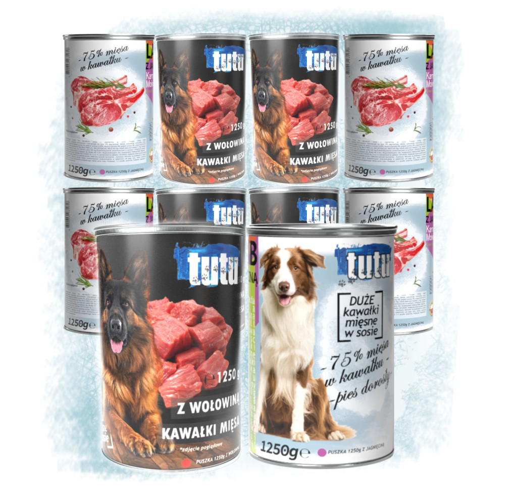 TuTu to polska marka oferująca produkty oparte o własne, oryginalne receptury. Specjaliści od żywienia stworzyli karmę, która przypadnie do gustu każdemu psu, a jednocześnie zadowoli klienta konkurencyjną ceną. Szeroki wachlarz produktów, a także wariantów smakowych – wszystko w trosce o psie podniebienie.