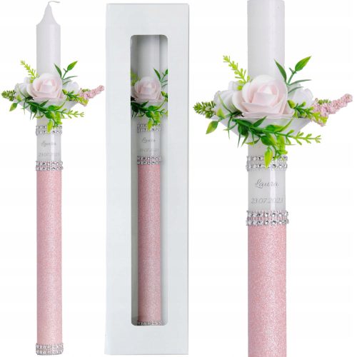 Piękna świeca do Pierwszej Komunii Świętej, ręcznie zdobiona. Przygotowana z największym wyczuciem stylu. Wykonana z najwyższej jakości komponentów. Różowa kolorystyka idealnie sprawdzi się jako Pamiątka Komunii Świętej dla dziewczynki. Uroku dodaje jej piękna kwiatowa aplikacją, przyozdobiona delikatnymi kryształkami.
