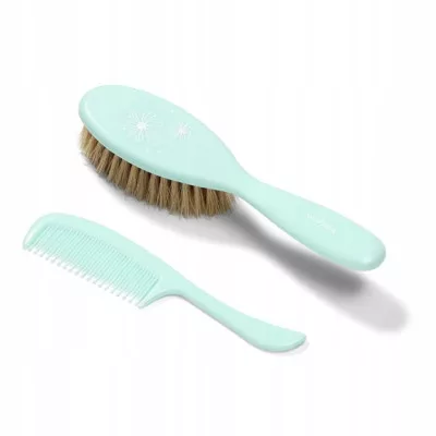 Miękka szczotka do włosów z delikatnym naturalnym włosiem przeznaczona jest do pielęgnacji niemowląt. Doskonale masuje skórę dziecka i dzięki swoim właściwościom antystatycznym nie elektryzuje włosów. Dołączony do zestawu grzebień ma zaokrąglone ząbki, dzięki czemu skóra dziecka nie zostaje podrażniona.