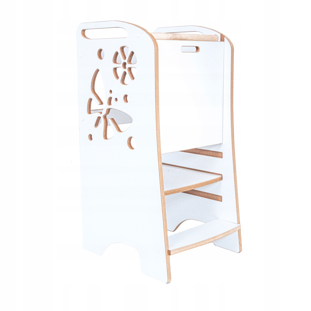 KITCHEN HELPER Pomocnik Kuchenny - Custom Motylek to nieoceniony towarzysz w kuchennych przygodach Twojego dziecka. To mebel, który łączy w sobie bezpieczeństwo, wygodę, i możliwość rozwoju. Daj swojemu dziecku szansę na aktywne uczestnictwo w kulinarnej podróży, twórzcie razem, i budujcie wspomnienia, które pozostaną na lata. Z KITCHEN HELPER Pomocnikiem Kuchennym Drabinką, gotowanie staje się magiczną chwilą, a kulinarna edukacja przekształca się w niezapomnianą przygodę. Płyta z której wykonany jest pomocnik posiada atest higieniczny. Produkt Polski.