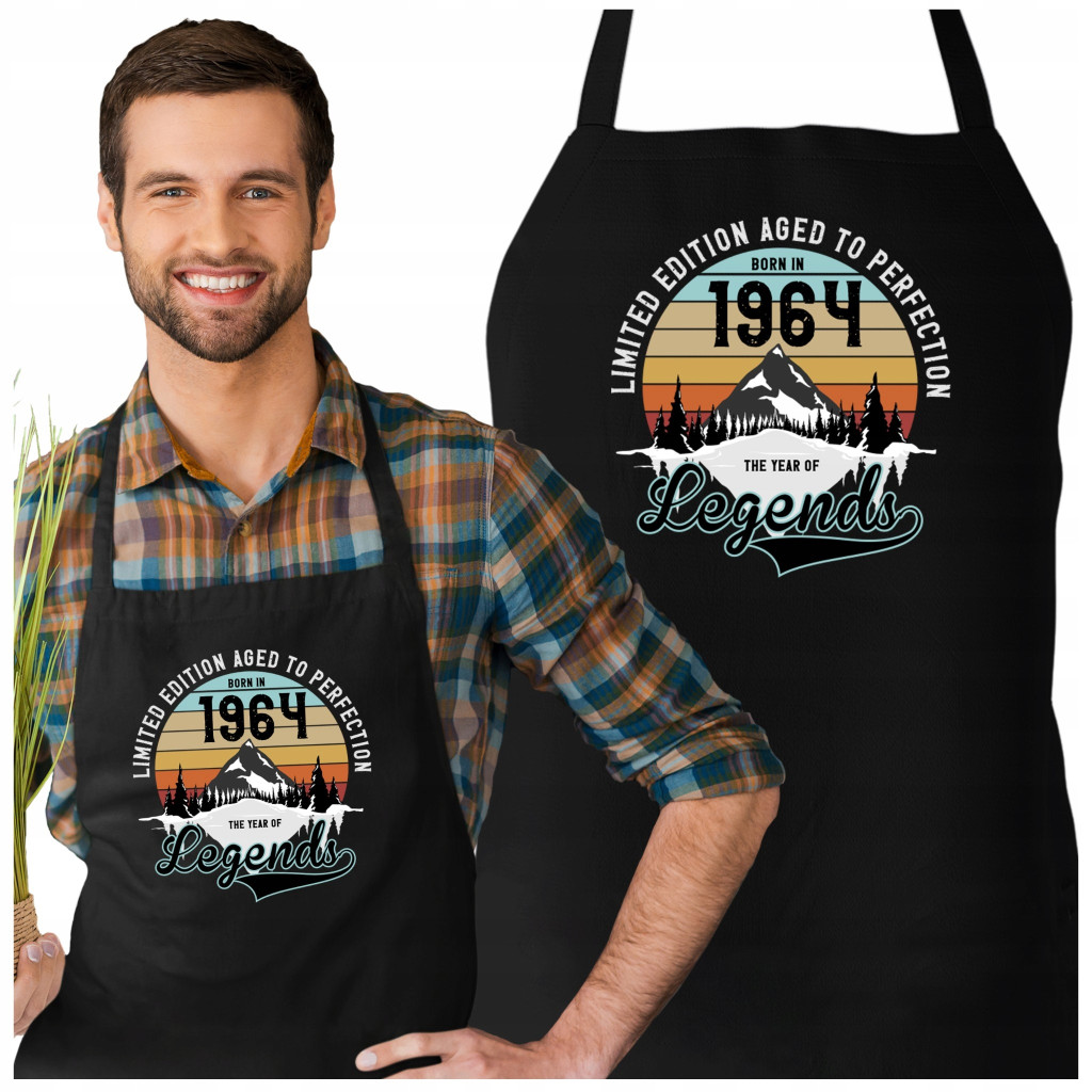 ⭐️FARTUCH NA URODZINY dla PREZENT Z NAPISEM: "LIMITED EDITION AGED TO PERFECTION BORN IN 1964 THE YEAR OF LEGENDS".