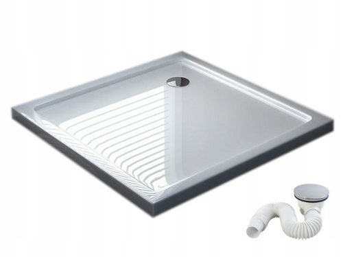 Brodzik wykonany jest z czystych płyt akrylowych, dno brodzika jest gładkie nieryflowane. Zestaw zawiera niski syfon fi 90 z chromowanym okrągłym korkiem. Syfon umożliwia czyszczenie od góry i jest wyposażony w wyjmowany osadnik zanieczyszczeń.