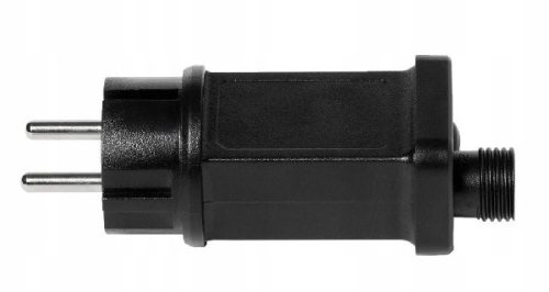Transformator, z podwójnym wyłącznikiem czasowym, Zasilacz jest przeznaczony do użytkuz ledami System – linii oświetlenia świątecznego z możliwością rozbudowy, obejmującej liczne łańcuchy świetlne i akcesoria. Transformator 12 W/31 V może zasilać maksymalnie 1000 diod LED i ma podwójny wyłącznik czasowy. Wyłącznik czasowy włącza produkt na 8 h, a następnie wyłącza go na 5 h, włącza na 4 h i znowu wyłącza na 7 h. Za pomocą jednego przycisku można wybrać funkcję wyłącznika czasowego, tryb pracy ciągłej lub wyłączyć światło. Stopień ochrony transformatora to IP44, , co oznacza, że cała seria jest zatwierdzona do użytku zewnętrznego. W komplecie kabel przedłużający