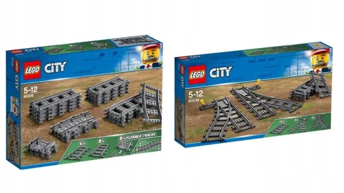 Lego City Zwrotnice 60238. Z zestawem LEGO® City Zwrotnice dojedziesz dalej! Z zestawem LEGO® City 60238 Zwrotnice zbudujesz nowe tory dla pociągów towarowych. Teraz przewożenie pasażerów i ładunków będzie jeszcze ciekawsze! Zestaw składa się z czterech łukowatych fragmentów torów, zwrotnicy skierowanej w prawo oraz zwrotnicy skierowanej w lewo. Tory pasują do istniejących zestawów kolejowych.
