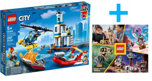 LEGO® City Akcja nadmorskiej policji i strażaków (60308) to zestaw, który łączy dwie popularne serie LEGO City, więc na pewno przypadnie do gustu dzieciom uwielbiającym zabawę w odgrywanie ról. Konstruktorzy znajdą w nim posterunek policji, helikopter policyjny, motorówkę złodziejaszka i łódź strażacką, która unosi się na wodzie. Dodatkowo w komplecie są cztery ułatwiające rozpoczęcie zabawy minifigurki, a wśród nich Tom Bennett z serialu LEGO City Adventures!