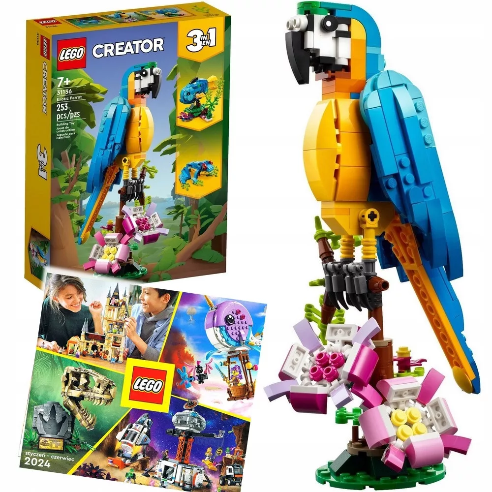LEGO Kreativni set 3 v 1 31136 Eksotična papiga - Kocke za gradnjo Egzotičnega Papagaja, Žabe in Ribe 3 v 1 + LEGO KATALOG 2024
