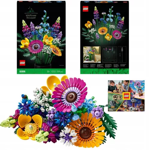 Złożony całkowicie ze szczegółowych klocków LEGO bukiet z polnych kwiatów obejmuje osiem gatunków kwiatów na regulowanych łodygach. Początkujący floryści i wielbiciele kwiatów mogą spędzić wiele godzin na budowaniu i odkrywaniu kwiatów inspirowanych chabrami, lawendą, makami walijskimi, trybulą leśną, paprocią skórzastą, gerberami, ostróżkami i łubinem. Po ukończeniu modelu kwiaty LEGO można ustawić w ulubionym wazonie, tworząc piękną ozdobę, która zasieje ziarno radości w każdym pomieszczeniu.