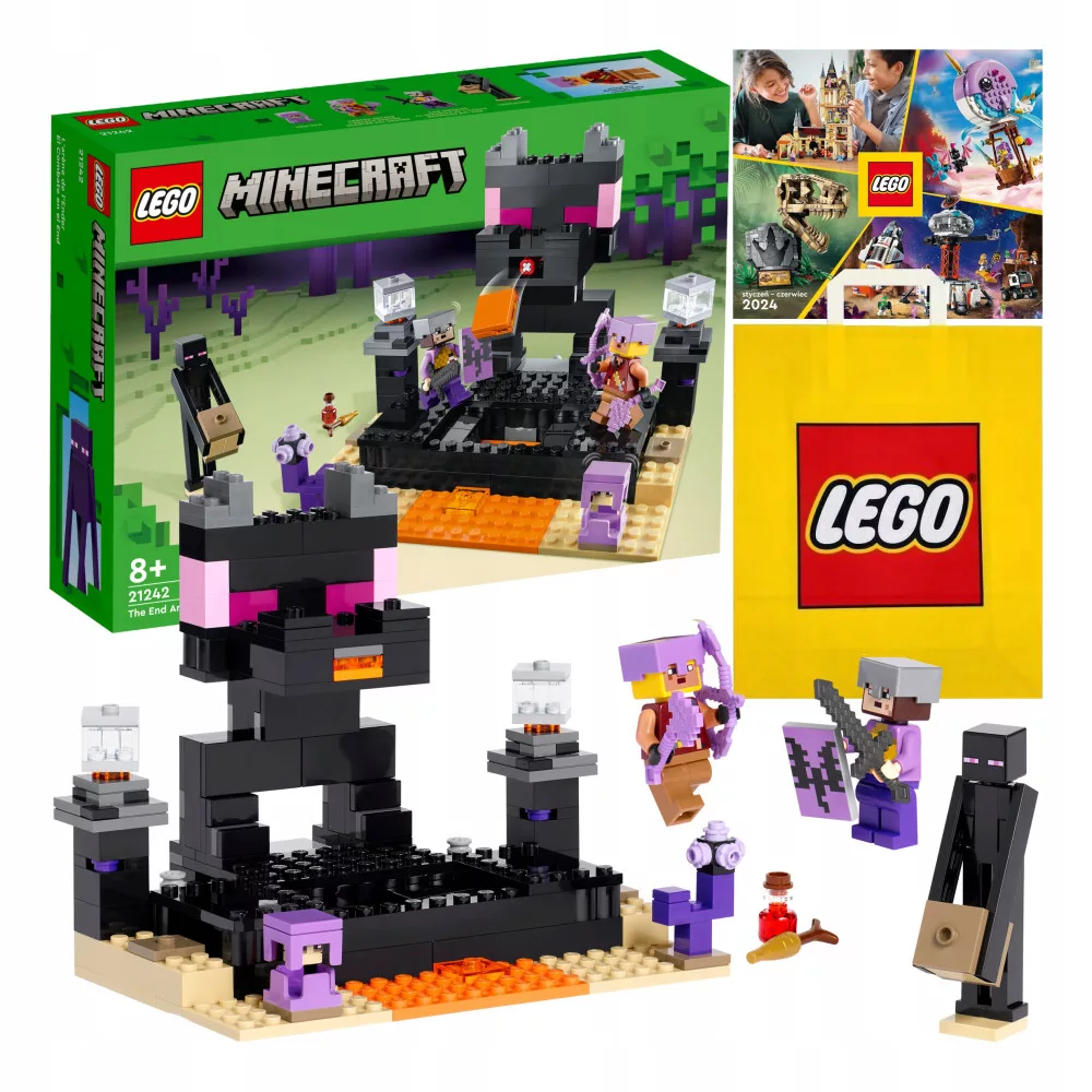 Zestaw LEGO® Minecraft® (21242) przedstawia kultowy pojedynek wojownika Endu i smoczego łucznika na słynnej arenie Endu!