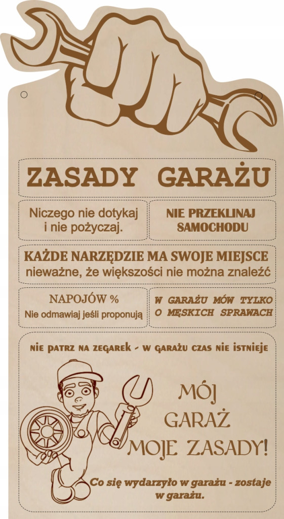 Tablica wykonana ze sklejki 3mm o wymiarach 180x330mm z grawerem to świetny prezent dla kogoś bliskiego. Tabliczka posiada w zestawie sznurek jutowy oraz otwory, które pozwalają na łatwy montaż.