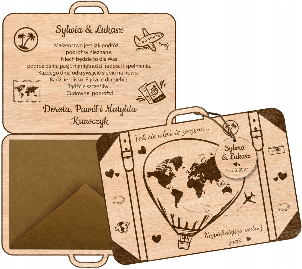 WALIZKA Z ŻYCZENIAMI I KOPERTĄ NA PIENIĄDZE.