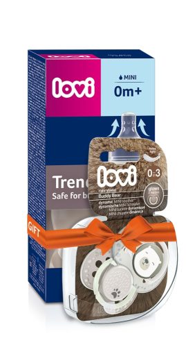 LOVI set za darilo Trendi Medvedek vsebuje stekleničko za hranjenje mame mleka in dve silikonski dudi za dojenčke od 0 do 3 mesecev. Steklenička je oblikovana tako, da ne moti naravnega odraslega otroka in omogoča enostavno preklapljanje med dojenjem in hranjenjem stekleničke. Buteljka je združljiva z LOVI laktatorji in ima inovativen sistem SUPERvent za zmanjšanje kolike. Vključuje tudi smukec dinamičnega smukca, ki pomaga pri pravilnem razvoju govora in zagrizu. LOVI set je preizkušen pod zdravniškim nadzorom, brez BPA in primeren za pomivanje, sterilizacijo in dezinfekcijo. Ohranja naravni ritem hranjenja in zagotavlja udobno uporabo za dojenčka.