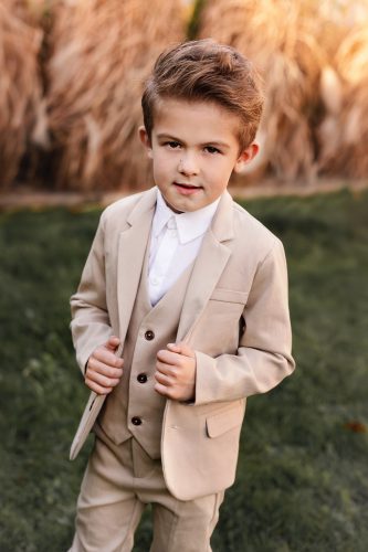 Garnitur chłopięcy został wykonany z przepięknej bawełny w kolorze latte. Garnitur dla chłopca jest elegancki, a co więcej urzeka swoją klasą i odcieniem. Wybrany kolor jasno beżowy jest niesamowicie twarzowy Przepięknie prezentuje się na dziecku. Zachwyci materiałem, krojem i kolorem Twoje dziecko.