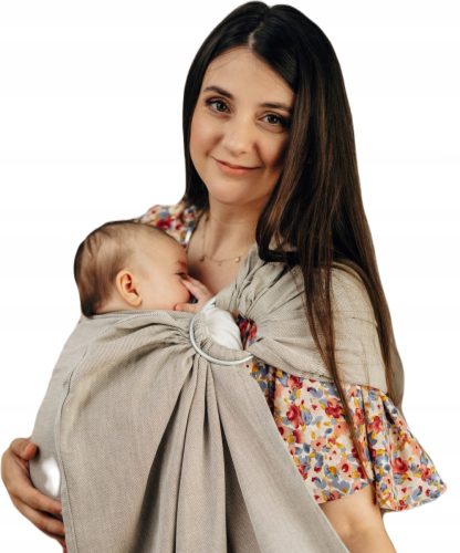 Nie wymaga wiązania! Wystarczy przełożyć chustę przez kółka, włożyć dziecko i dociągnąć. Jest lekka i zajmuje niewiele miejsca