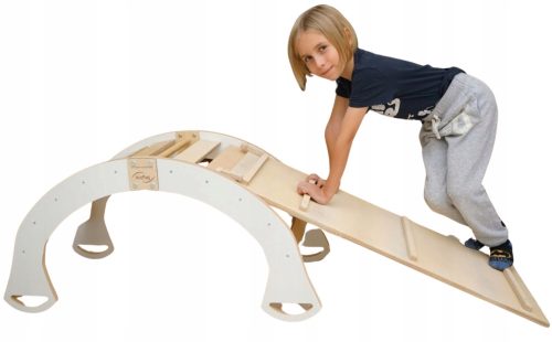 A na koniec równoważnia, która silnie oddziałuje na mięśnie brzucha i kręgosłupa dzieci. Skutecznie wspomaga utrzymanie prawidłowej postawy ciała, jednocześnie ograniczając ryzyko wystąpienia jej wad. Dodatkowo poprawia koordynację ruchową, oddziałuje na część mózgu odpowiedzialną za skupienie i utrzymanie równowagi.