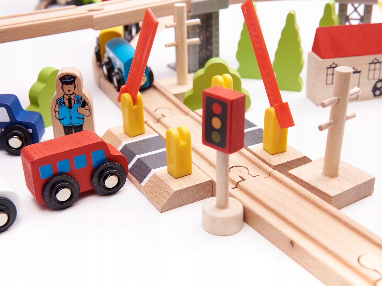 Nie istnieje jeden sposób budowania przejazdu! Most, filary, szlabany czy elementy zabudowy miasta można dowolnie ustawiać, wzbogacając otoczenie. To zabawa pobudzająca kreatywność!