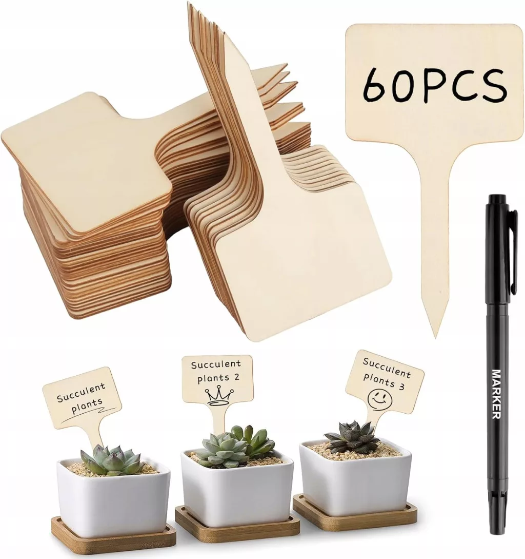 • Piękny zestaw tabliczek z nazwami roślin: otrzymasz 60 sztuk odpornych na warunki atmosferyczne tabliczek z nazwami roślin, wykonanych z drewna, oraz 1 marker. Każda etykieta ma ok. 10 cm długości i 5,5 cm szerokości. Marker ma 14,5 cm długości i podwójną końcówkę z wkładami o różnych rozmiarach, co pozwala na opisywanie roślin i dodawanie im pięknego akcentu.