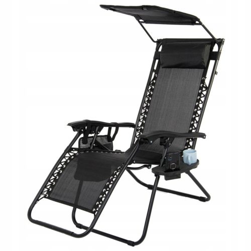 Miękki zagłówek pozwoli Ci wygodnie oprzeć na nim głowę i przyjąć wygodną pozycję podczas leżenia. Regulowany daszek, zagwarantuje przyjemny cień lub dostęp do pełnego słońca, kieszeń boczna stały dostęp do gazety lub ulubionej książki, a stoliczek pozwoli postawić kubek z kawą, sok lub telefon. Stelaż fotela wykonany jest z solidnych i wytrzymałych stalowych rurek, utrzyma obciążenie aż do 120 kg!