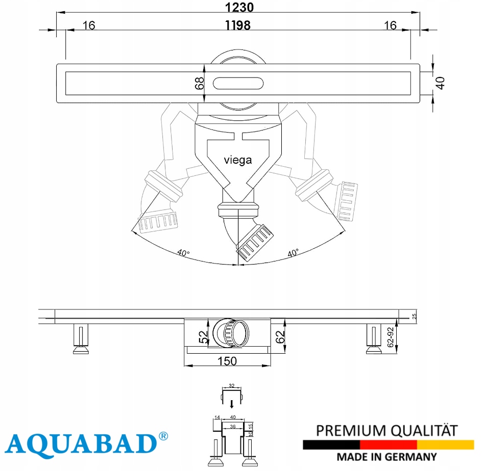 ? niemiecki syfon Viega, z pełnym uszczelnieniem, z sitkiem przeciw włosom i ochroną przed zapachami z kanalizacji